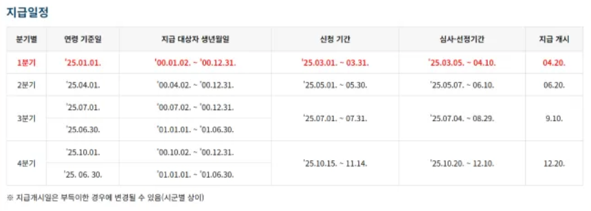 - 지급 일정: 2025년 4월 20일부터 순차 지급