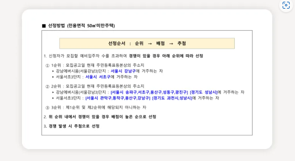 - 1순위: 강남에버시움 – 강남구 거주자, 서울서초3 – 서초구 거주자