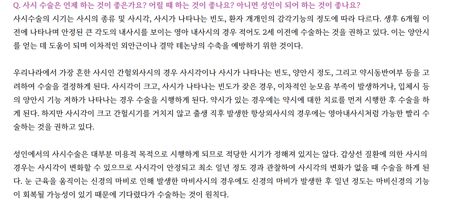 사시 수술, 집중력과 멍한 증상에 효과 있을까? 증상, 사례, 사위까지 총정리