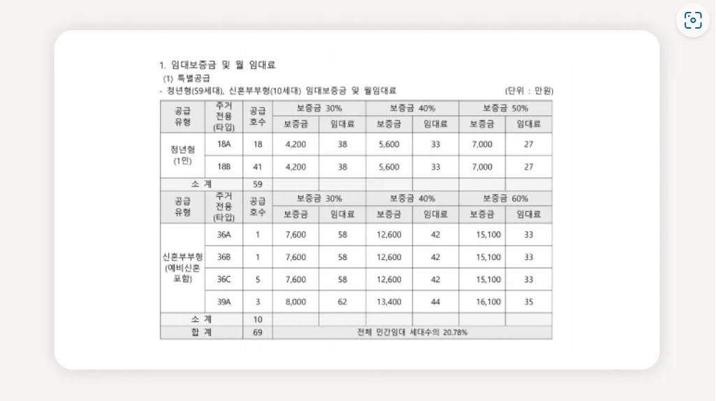 청년안심주택의 가장 큰 장점 중 하나는 저렴한 월세입니다. 월세는 최저 27만 원부터 시작하며, 보증금 전환 비율도 선택할 수 있어 개인의 상황에 맞는 유연한 주거 선택이 가능합니다. 특히 청년 1인 가구나 예비 신혼부부에게 적합한 조건입니다.