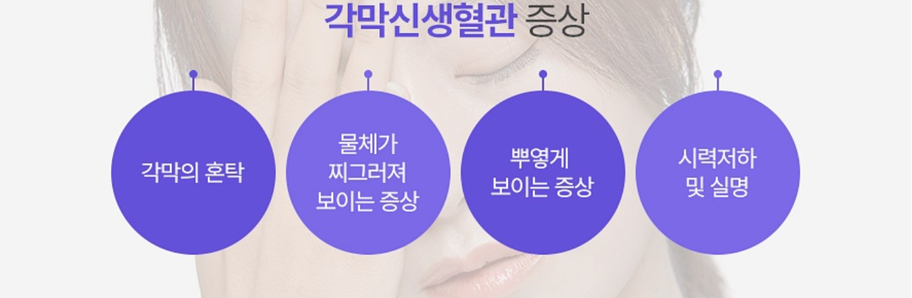 써클렌즈는 산소 투과율이 낮아 눈이 충분한 산소를 받지 못하는 경우가 많습니다. 이때 산소를 공급받기 위해 눈에 새로운 혈관이 자라나는 증상이 바로 각막신생혈관입니다.