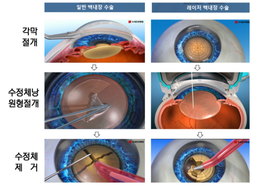 - 마취: 점안제를 통해 국소 마취를 시행하여 통증을 차단합니다. 일부 환자의 경우 진정제가 투여되기도 합니다.