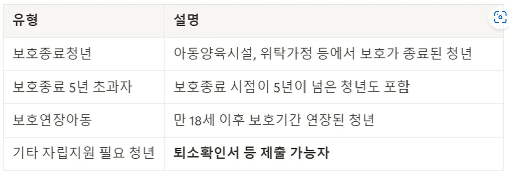 - 자립준비청년(보호종료 청년 포함, 종료 후 시간 경과 여부 무관)