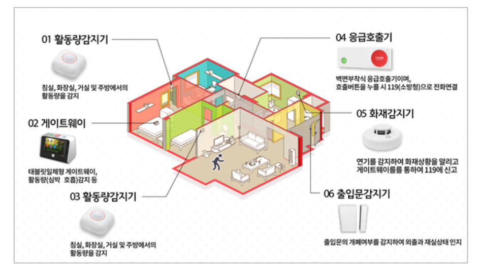 - 응급 호출기, 화재 감지기, 활동량 감지기까지 모두 무료 설치