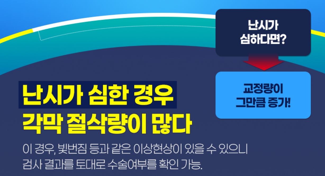 단순히 라식이 더 유명하거나 회복이 빠르다는 이유로 선택했다가 수술이 불가능하거나 효과가 떨어질 수 있기 때문입니다.