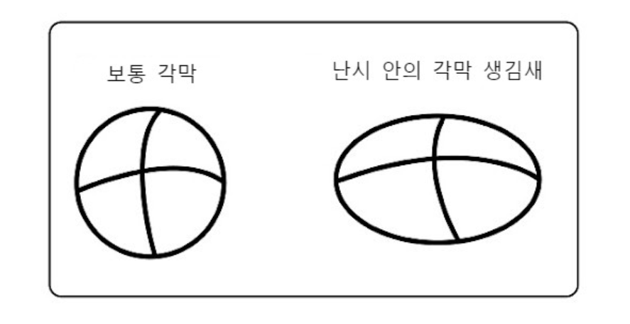 2. 비정상적인 안구 형태 (ex. 각막 불규칙성, 원추각막 전단계)