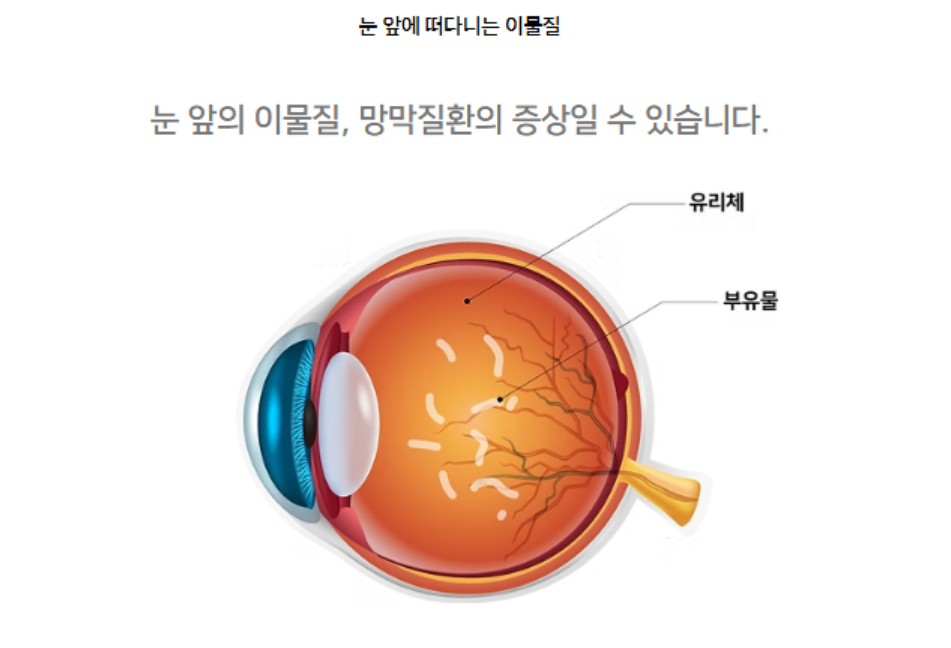 - 주의: 평소 비문증이 없던 사람에게 갑자기 나타나면 매우 위험