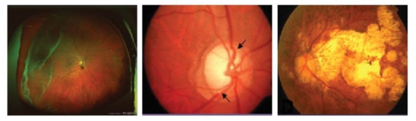 갑작스러운 시야 상실. 대부분 50대 이상 고혈압·고지혈증 환자에게 나타남. - 유두부 부종 (Papilledema)