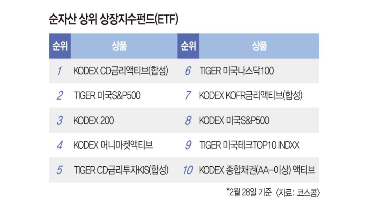 | TIGER CD금리투자KIS(합성) | 5.2 | 3.4 | 단기 금리 추종형 ETF |